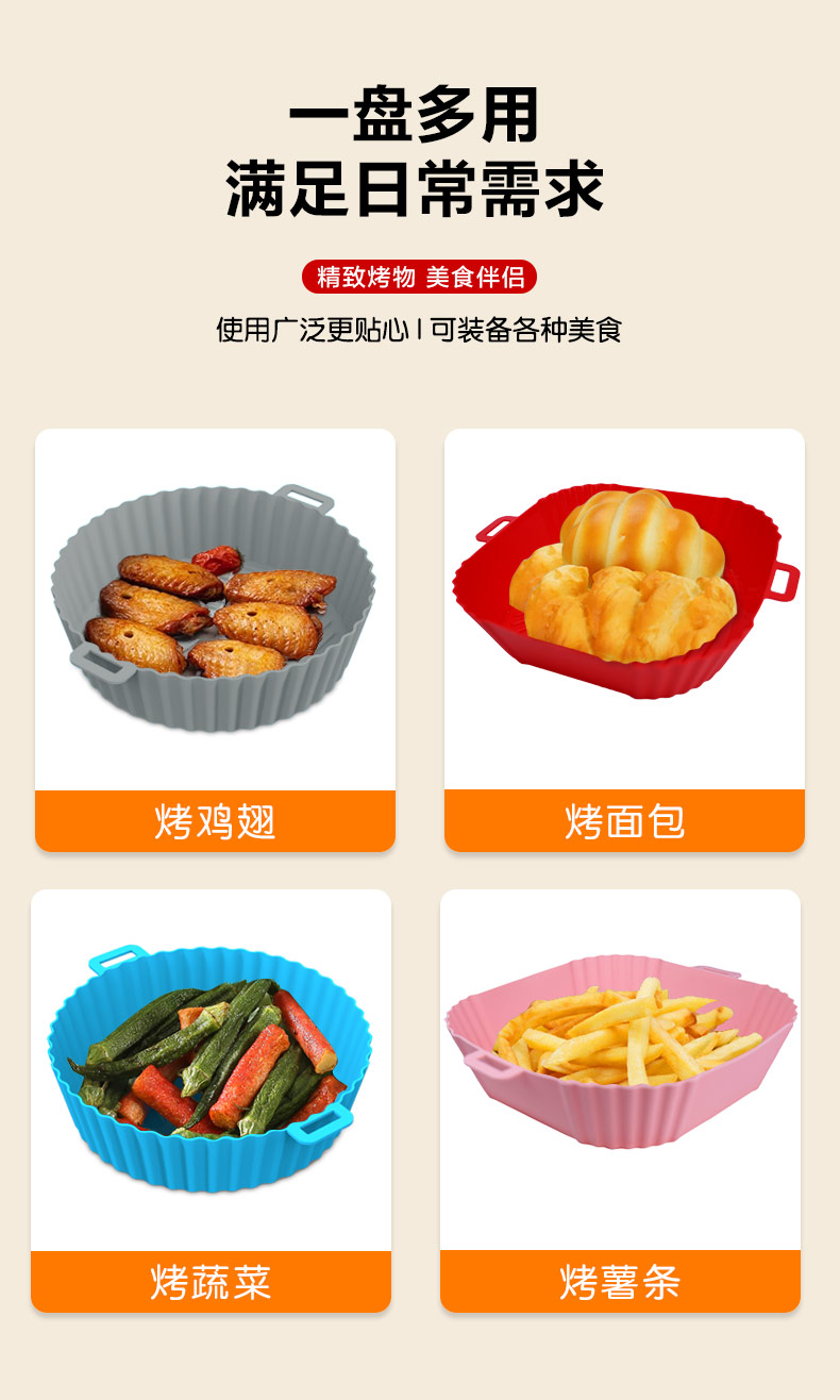 您的位置:首頁(yè) > 產(chǎn)品中心 > 硅膠廚具用品 > 空氣炸鍋硅膠烤盤易清洗不粘油硅膠炸鍋墊可重復(fù)使用空氣炸鍋墊