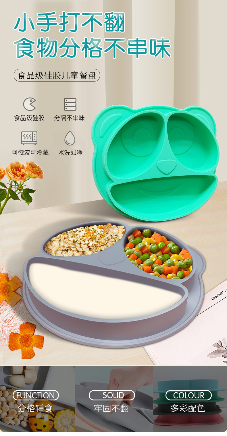 您的位置:首頁 > 產品中心 > 硅膠嬰童用品 > 硅膠碗 > 吸附式硅膠分格餐盤