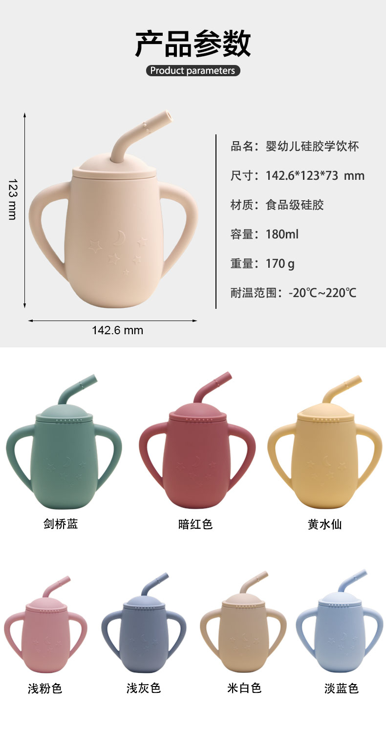 嬰幼兒硅膠學飲杯 帶吸管飲水杯