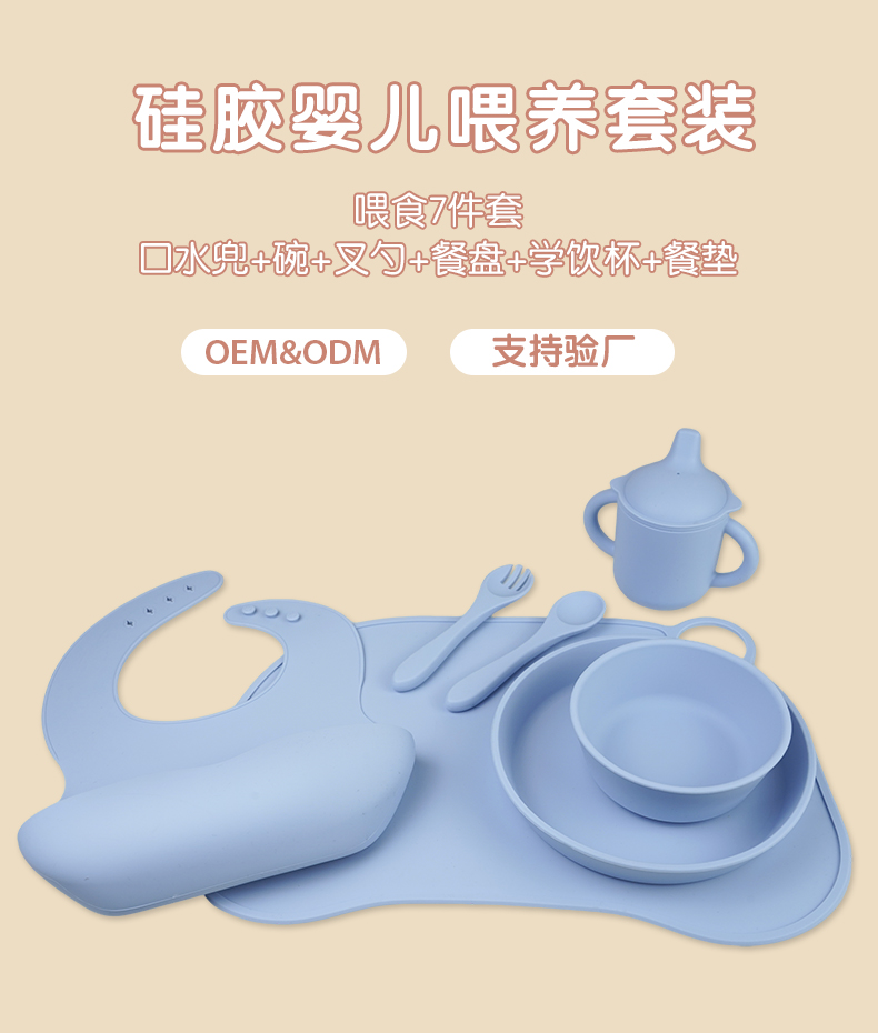您的位置:首頁 > 產品中心 > 硅膠嬰童用品 > 硅膠圍兜吸盤碗大勺子可水煮食品級母嬰硅膠喂養餐具套裝