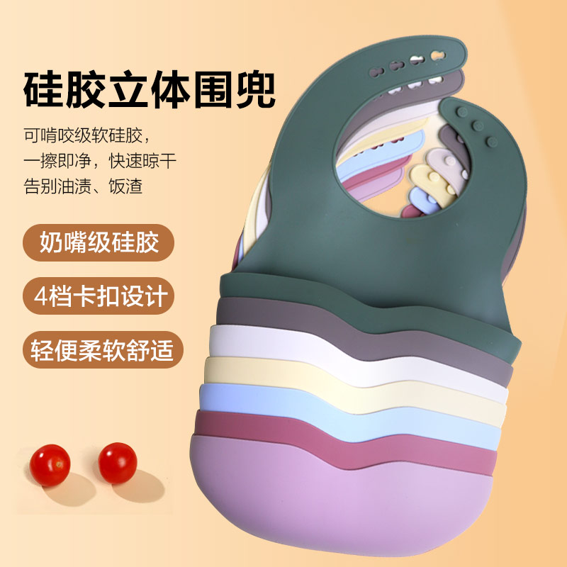 硅膠嬰兒寶寶吃飯圍兜純色立體兒童飯兜