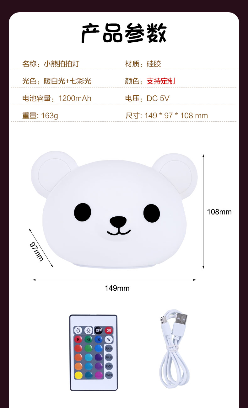 您的位置:首頁 > 產(chǎn)品中心 > 硅膠家居用品 > 拍拍燈 > 卡通可愛小熊拍拍燈夜 硅膠拍拍燈