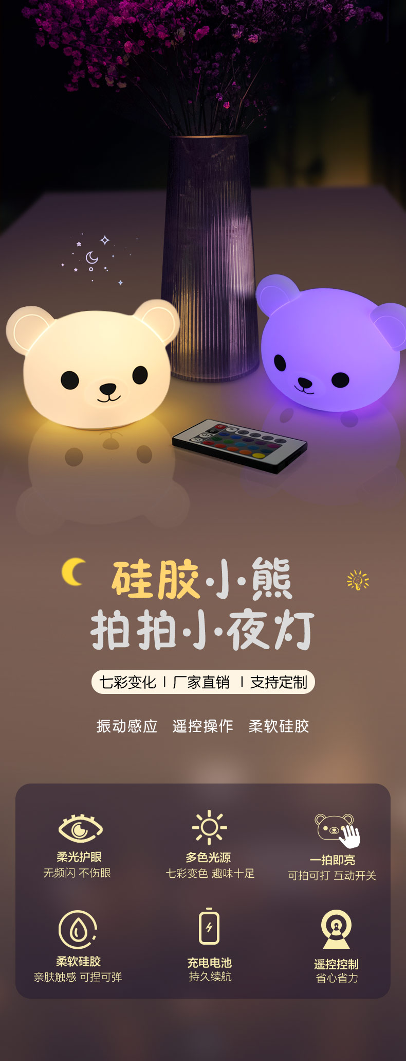 卡通可愛小熊拍拍燈夜 硅膠拍拍燈