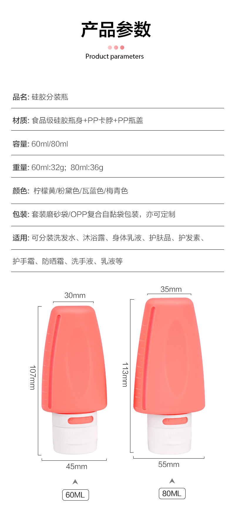 您的位置:首頁 > 產品中心 > 硅膠家居用品 > 防漏硅膠分裝瓶便攜式出差旅行洗漱分裝瓶套裝化妝瓶乳液瓶