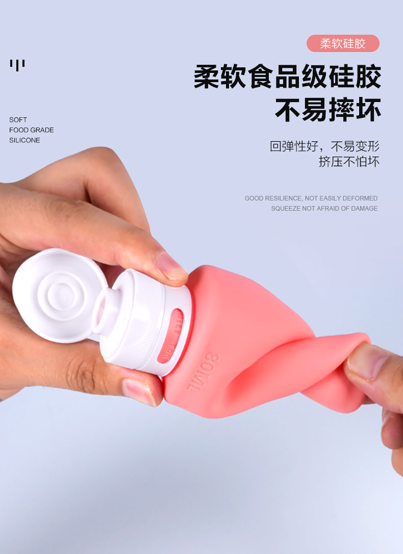 材質: 食品級硅膠瓶身+PP卡脖+PP瓶蓋