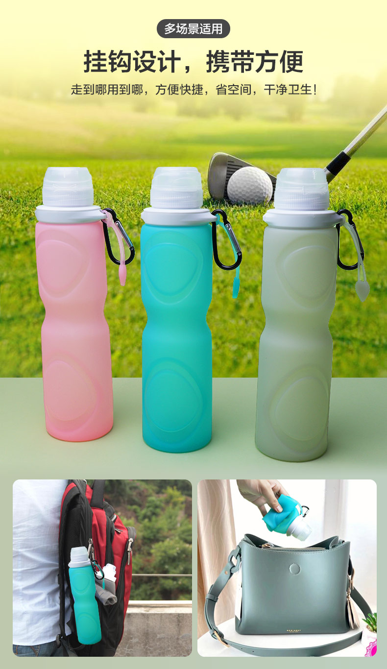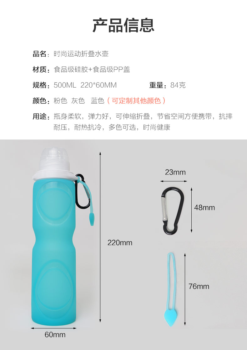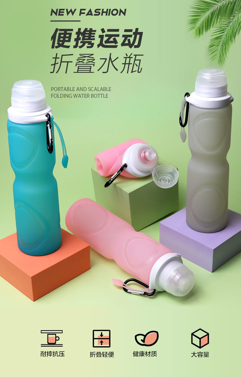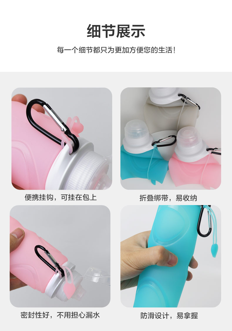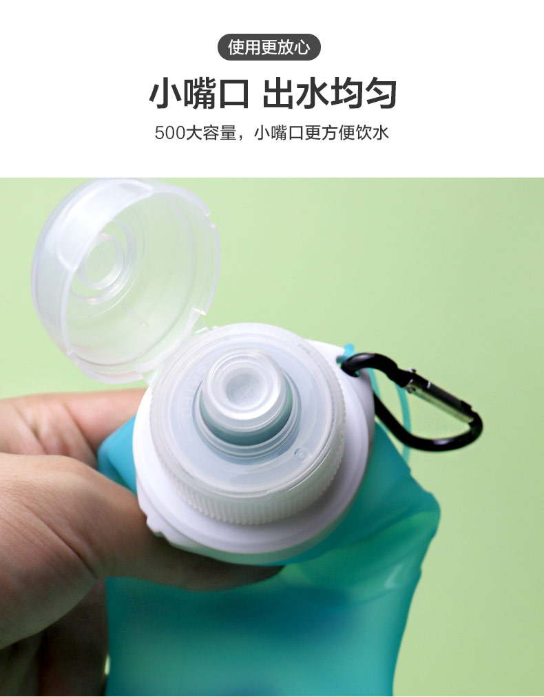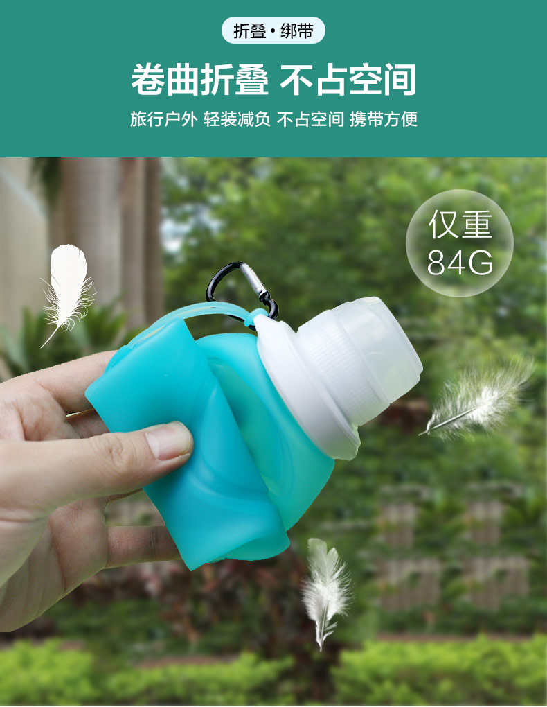 用途:瓶身柔軟,彈力好,可伸縮折疊,節省空間方便攜帶,抗摔